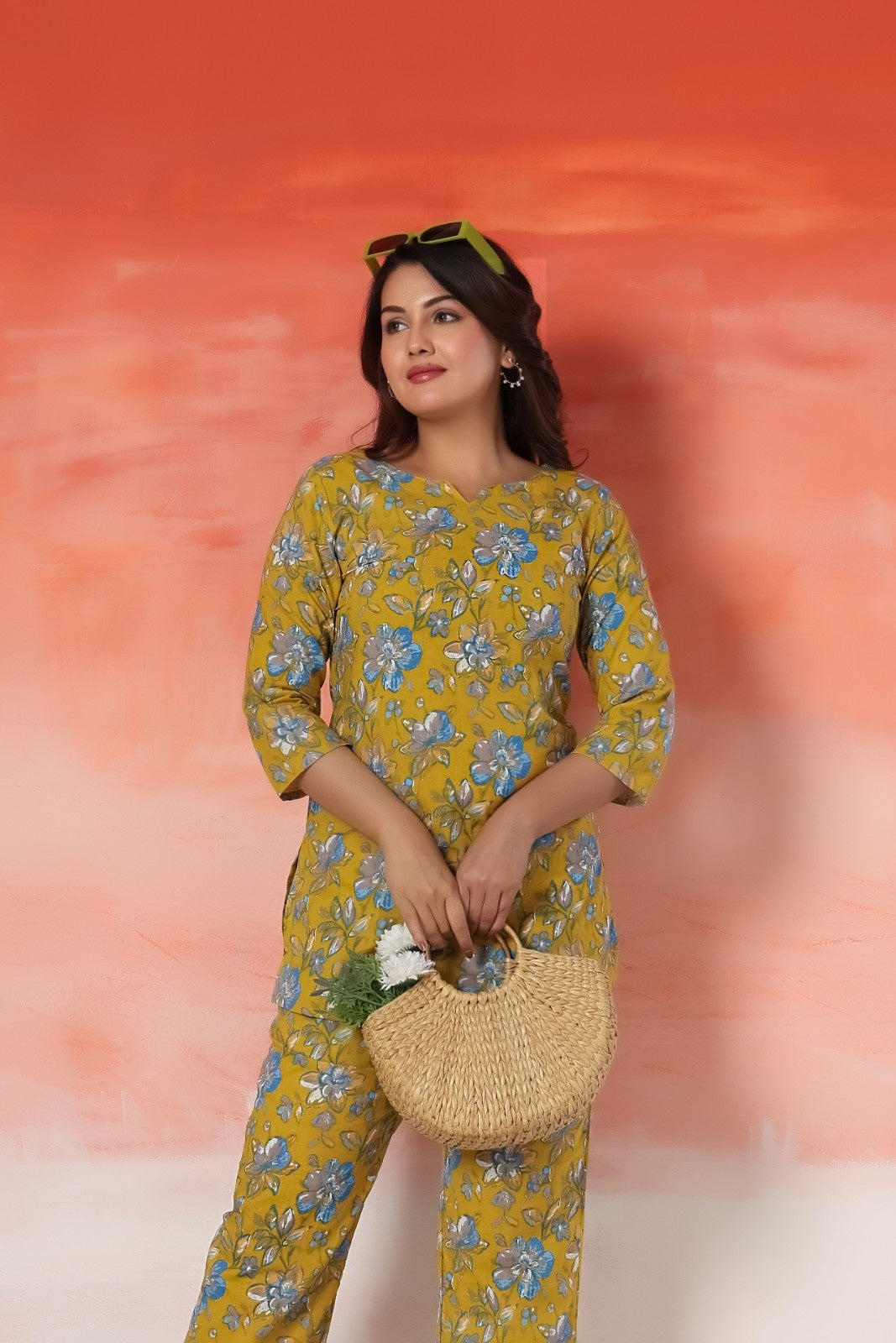 Bright and graceful floral ensemble featuring a flattering fit and premium finish for modern sophisticated wear.