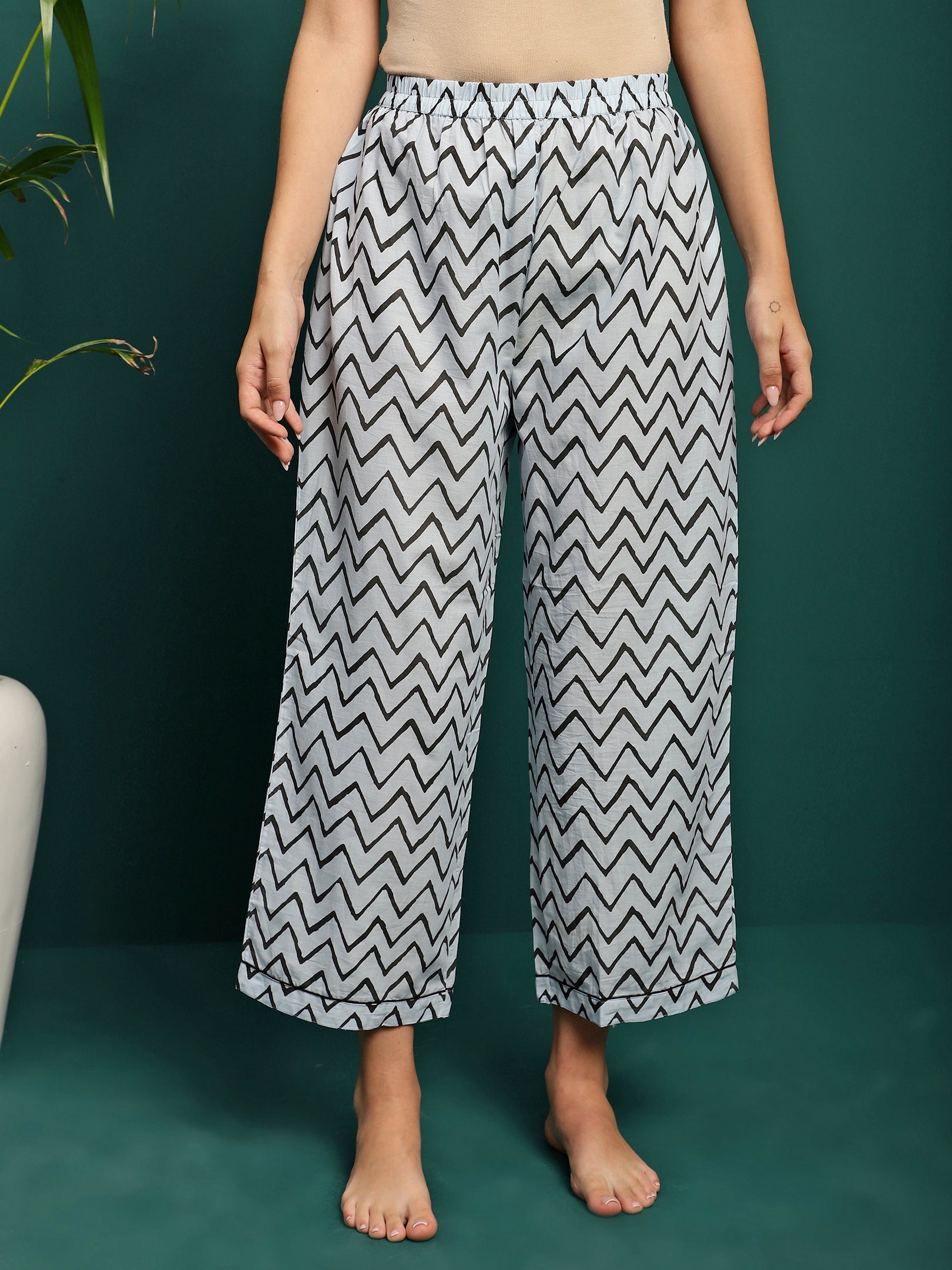 Zig Aura Chevron Printed Pure Cotton Shirt & Pyjama Co-Ord Set
