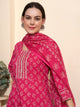 Red Printed Pure Cotton Kurta With Trouser & Dupatta