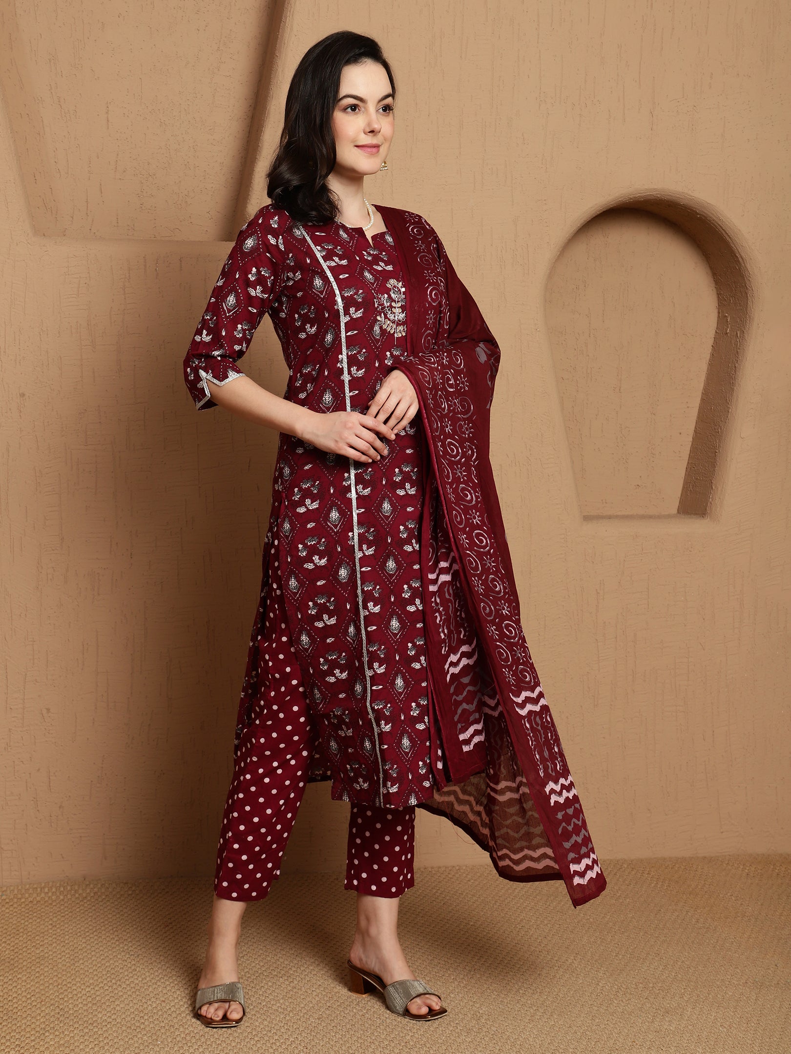 Marvi Muse Ethnic Motifs Printed Pure Cotton Kurta With Trouser & Dupatta