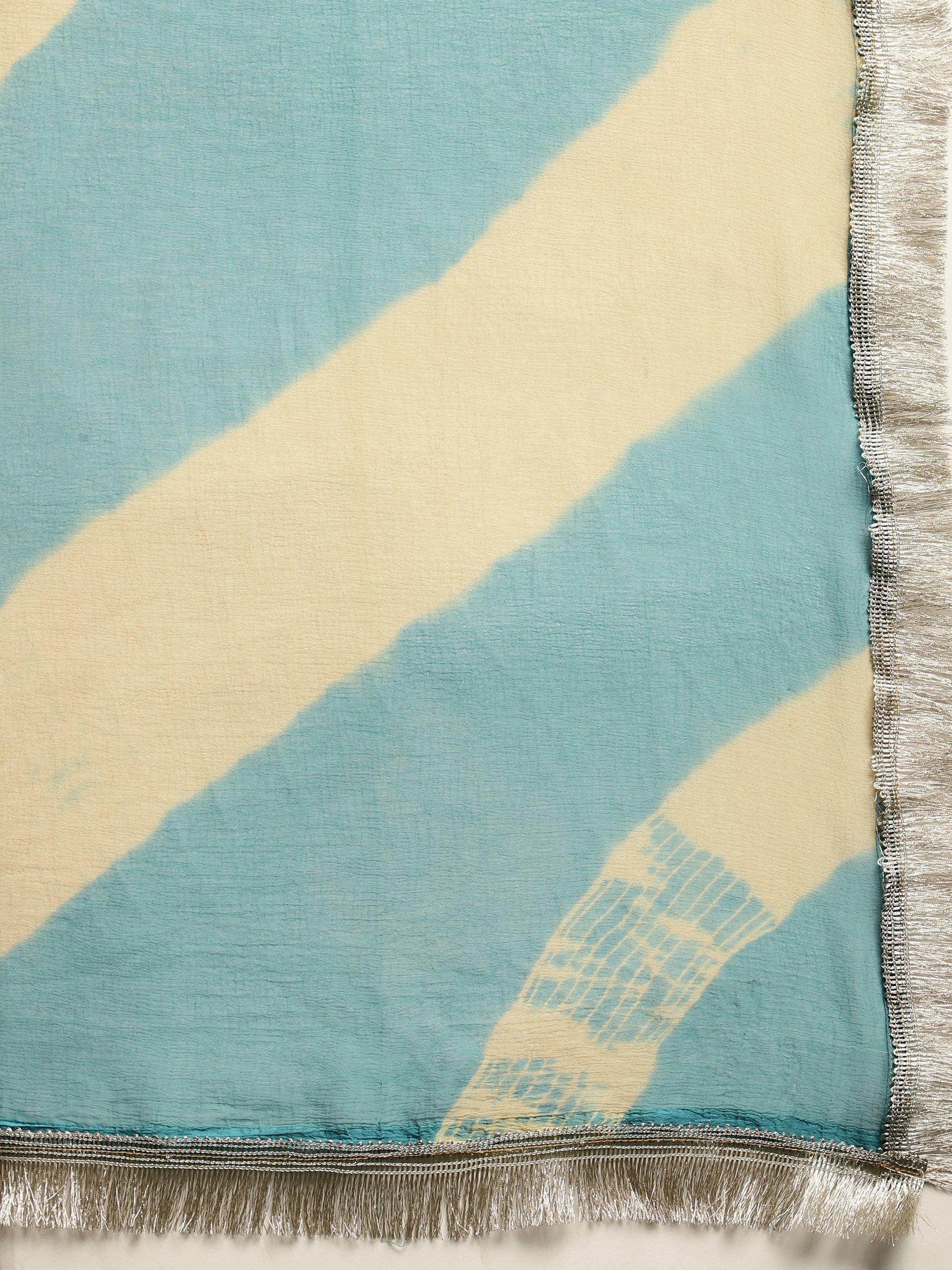 Gleam Garden captures floral elegance through mirror and zari craftsmanship — a silk-blend kurta set that radiates subtle luxury.