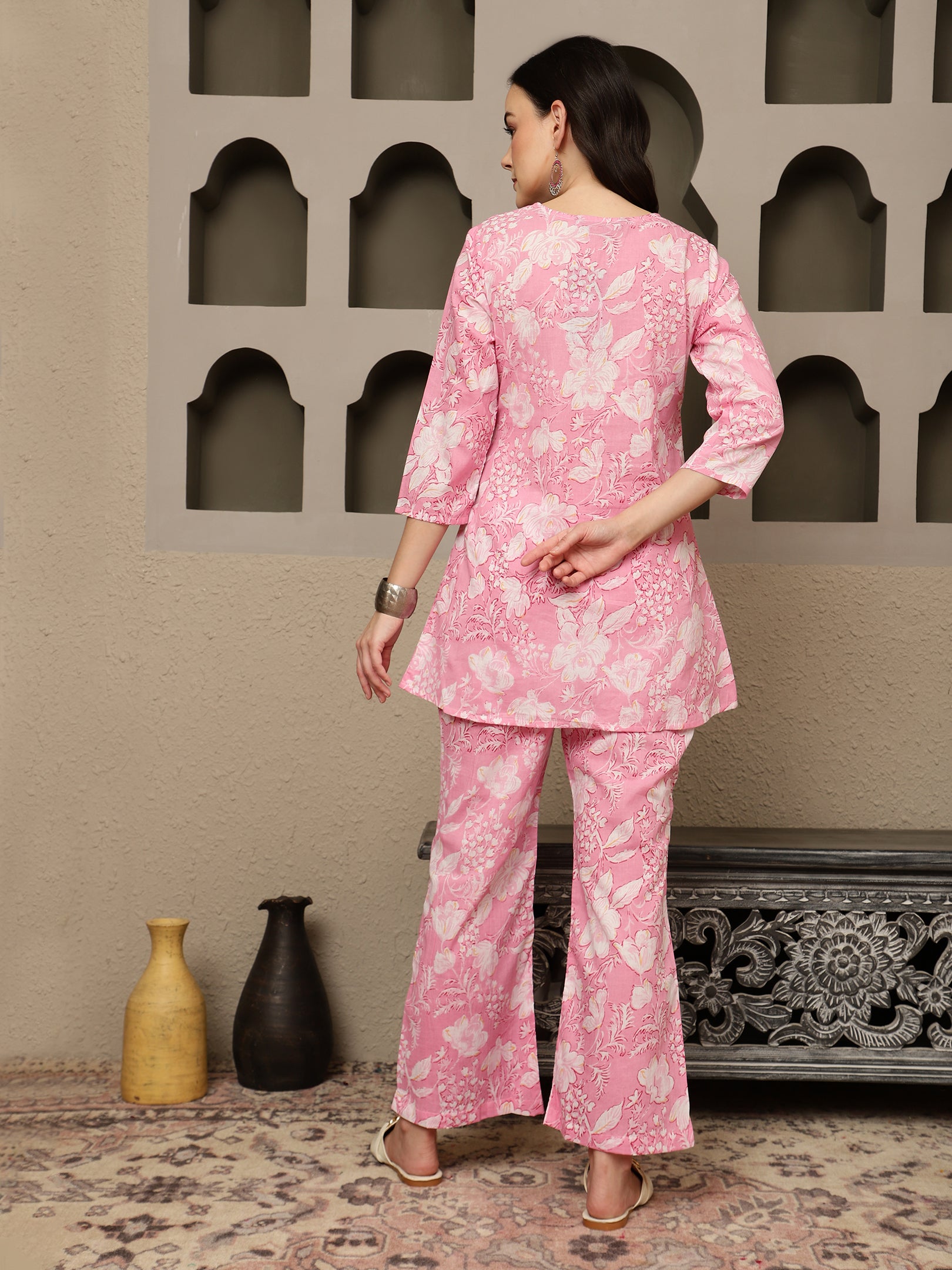Nivara Floral Printed Cotton Tunic & Trousers Co-ord Set
