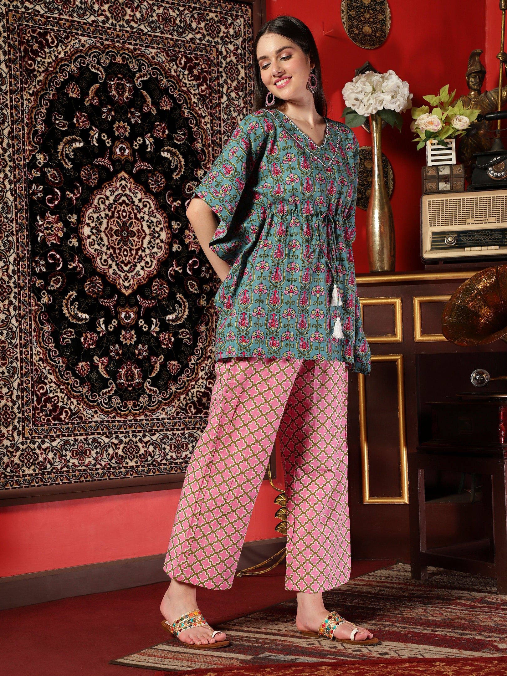 Pacific Petal Blue Floral Printed Cotton Co-ord Set for Women Breezy Everyday Elegance