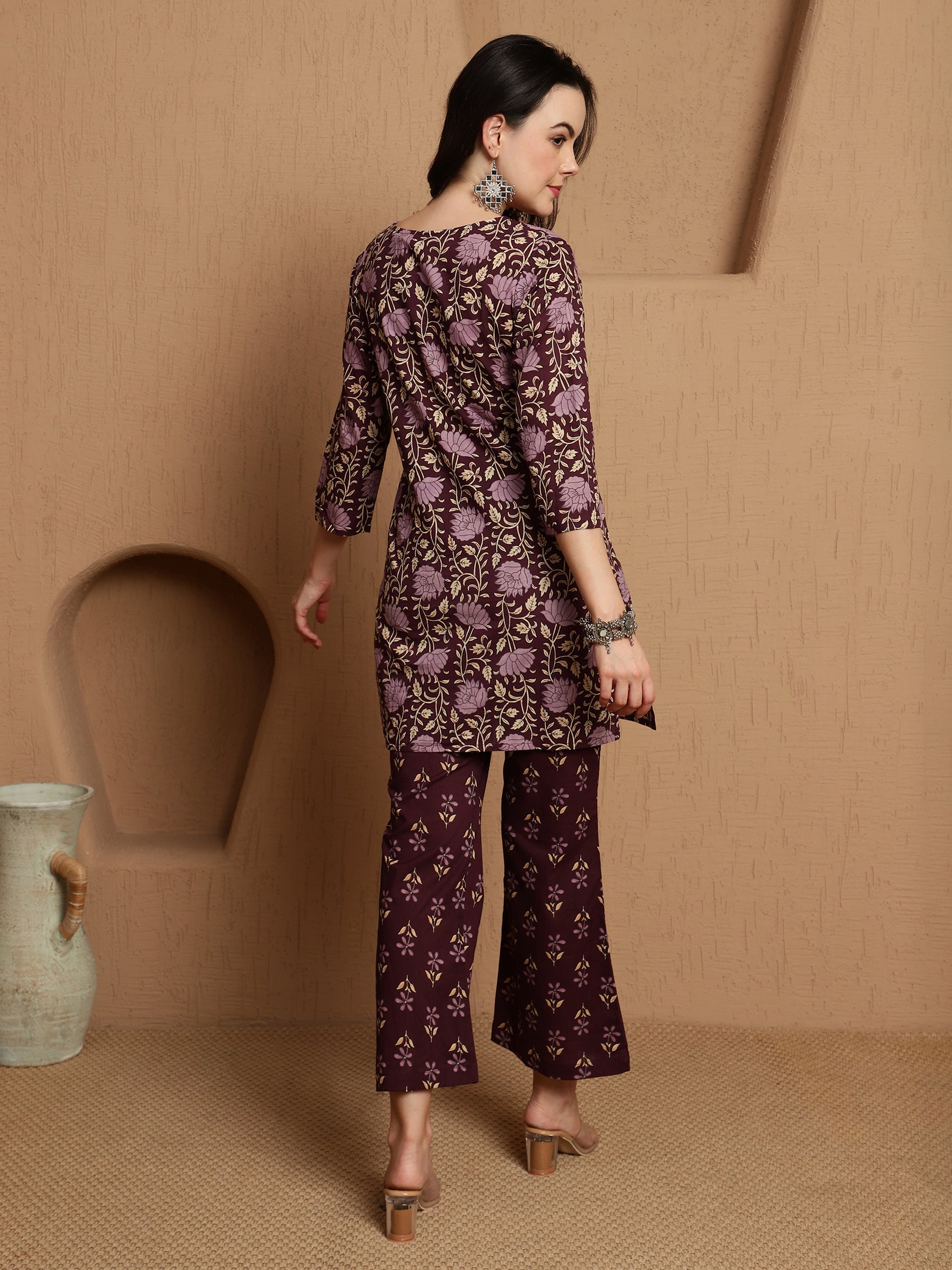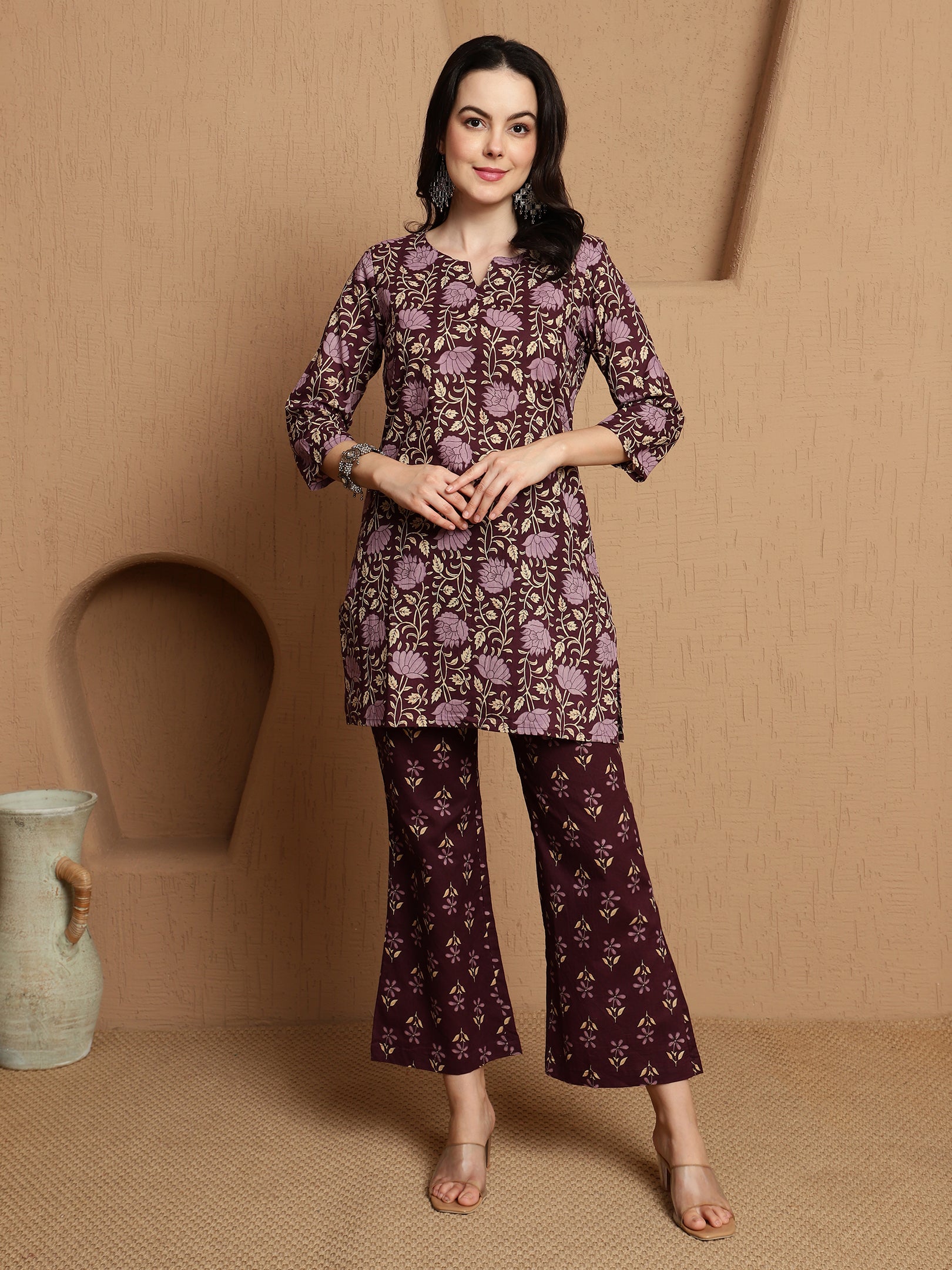 Tavisa defines effortless sophistication — a dark brown co-ord set crafted from breathable pure cotton. With its clean tailoring and subtle detailing, this ensemble offers versatile styling for workdays, brunches, or relaxed festive moments.